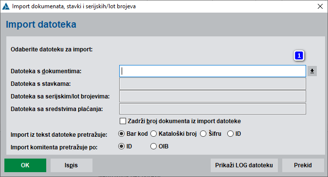 Deklaracija import datoteke za automatsko učitavanje serijskih brojeva stavka iz vanjskih bar code čitača