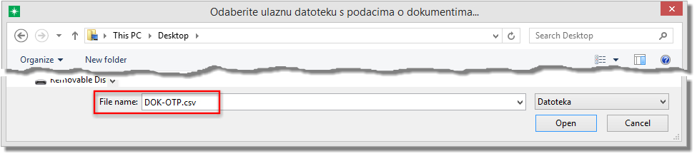Za izbor tekst datoteke iz koje želimo importirati dokument, u ovom primjeru otpremnicu, stavke vezane za taj dokument i serijske brojeve vezane za stavke na sljedećem prozoru odaberite strelicu prema dolje kako bi ste...