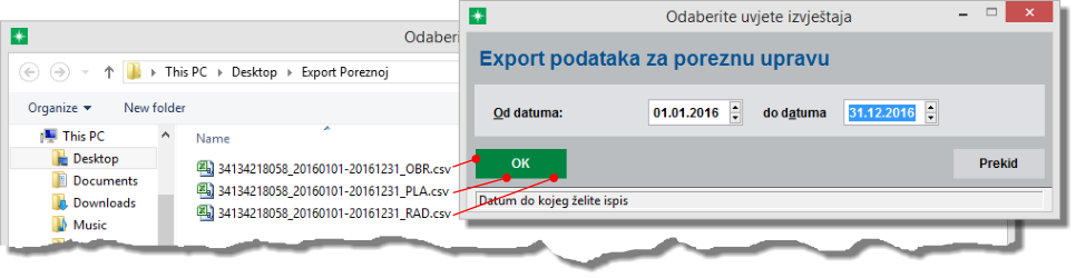 Ako ste napravili prethodne korake, u direktoriju koji ste odabrali nalaze se tri datoteke koje je potrebno poslati poreznoj upravi.