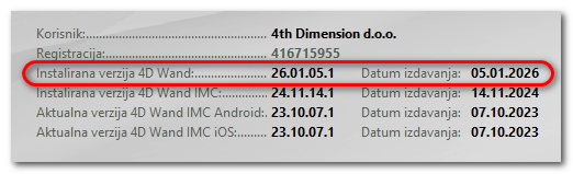 NAJČEŠĆI PROBLEMI, PITANJA I ODGOVORI ZA F2 NAKON PRVIH 6 DANA Nakon prvih 6 dana možemo slobodno napisati 4D Wand radi lavovski posao. Prvi dan je bilo problema s naše strane, pisali smo u 4D Wand Infou broj 661, ostalih dana smo "tesali" detalje, a nakon toga uglavnom većina problema je bila na strani korisnika. Ovaj 4D Wand Info je rezime nesnalaženja, nedoumica, pogrešnih koraka… korisnika, te je mudro da bilo tko obrati pažnju na sve ispod napisano. Pokušat ćemo ovaj 4D Wand Info napraviti što kraćim, kako bi korisnici čitali isti, te kako bi ih isti naveo na pravi put. Jasno je da je nemoguće sve probleme staviti na 2-3 strane… •Najvažnije je biti uvijek na zadnjoj verziji 4D Wanda. Verziju jednostavno usporedite s verzijom na našim Internet stranicama: