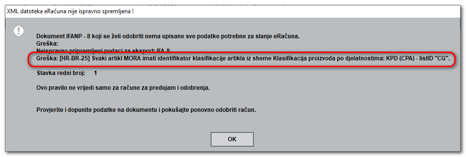 Ova poruka je nešto "glomaznija", ali i dalje je poruka jasna – treba na artiklu/usluzi upisati KPD…