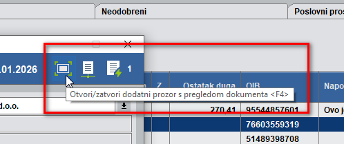 Njenim pozivom otvorit će se u dodatnom prozoru vizualizacija dokumenta, čime će kontrola podataka i unos biti jednostavniji i učinkovitiji.