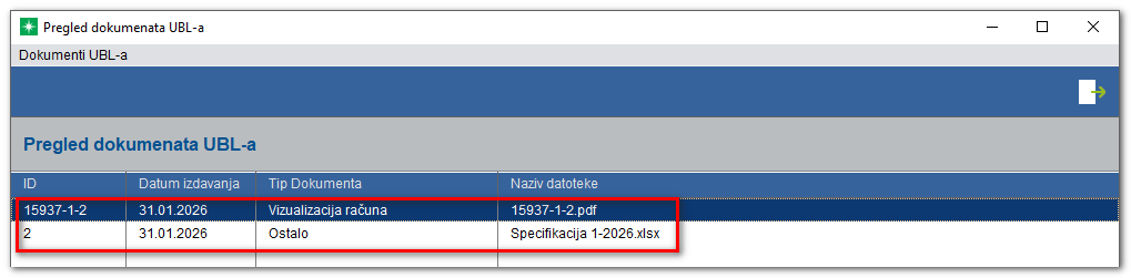 Uključivanjem ikone, svaki poziv tipke Izmjena na tabeli ulaznih računa otvorit će osim forme i sama vizualizacija tog računa. Ako je za isti dokument prilikom slanja zakačen i privitak, pozivom ikone nudi se mogućnost odabira što želite vidjeti/prikazati u dodatnom prozoru (u primjeru na slici račun ili specifikaciju).