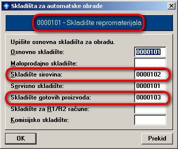 Za svako skladište potrebno je upisati osnovna skladišta, radi raznih automatskih obrada i informacija;