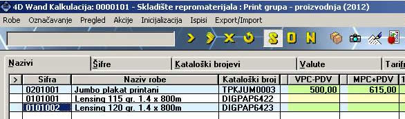 Prije nego finalno potvrdi unos proizvoda, komercijalista za isti može provjeriti proračun potrebnih količina komponenti za trenutno ponuđeni broj komada proizvoda; Tako će dobiti slijedeću tabelu na kojoj je potrebno odrediti skladište na kojem nam se nalaze sirovine, te nam u tom slučaju jasno piše koliko proizvoda možemo proizvesti kao i koliko nam repromaterijala nedostaje za ukupnu seriju;