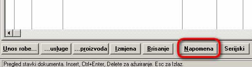 Nakon što komercijalista završi sa unosom proizvoda koji nudi, potrebno je (u nekim slučajevima) na samoj stavci unutar trenutnog dokumenta upisati i napomenu za istu;