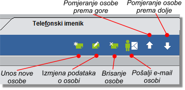Na alatnoj traci nalaze se ikone koje se najčešće koriste i time osiguravaju brz pristup traženoj informaciji ili željenoj operaciji. Pored lokatora, polja koje služi za brzo pronalaženje sloga u bazi podataka, nalazi se standardne ikone za označavanje i prikaz označenih slogova.