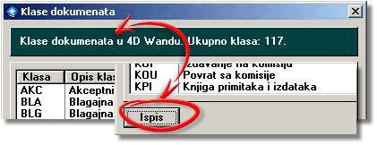 Iako je sa svake tabele dokumenata bilo moguće pozvati pregled klasa dokumenata (npr. Promet --> Otpremnice --> Pregled --> Pregled klasa dokumenata) mnogima to nije bilo dovoljno već su željeli istu tabelu ispisati. Izašavši njima u susret, na dnu forme gdje su prikazane sve klase dokumenata, dodali smo tipku Ispis. Klikom na nju ista će se ispisati kao i svi ostali Wand dokumenti u MS Wordu.