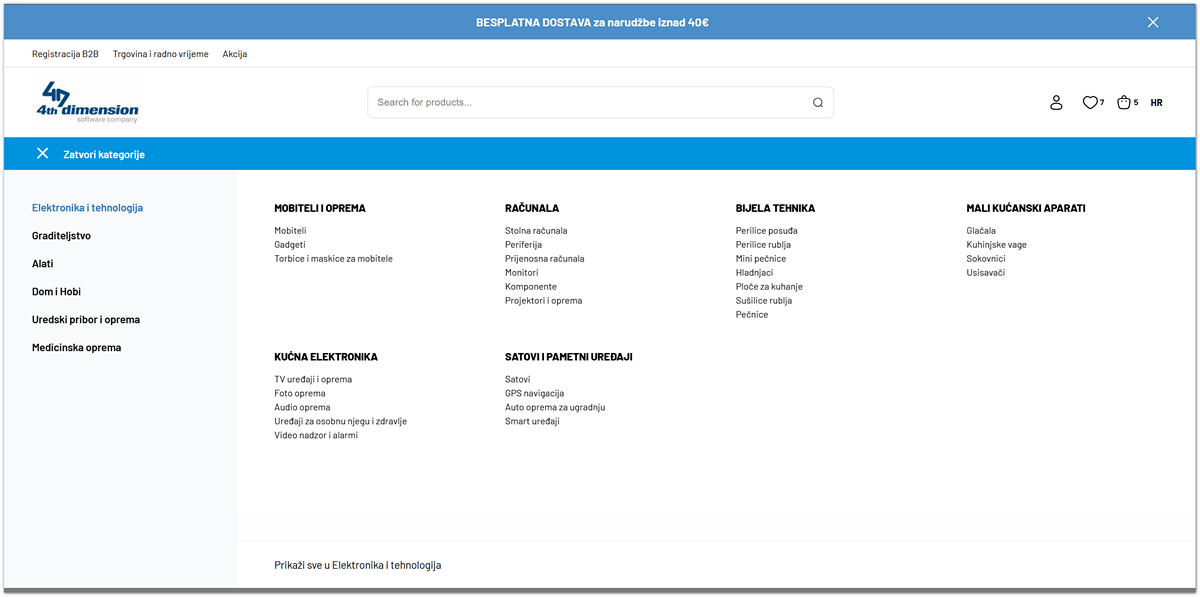 Zaglavlje 3 - sadrži mega meni, idealan za trgovine s velikim brojem kategorija i potkategorija