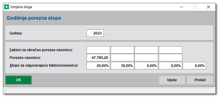 *** NAPOMENA: Obratite pažnju da stope nisu nužno iste za svaku godinu. Ovaj primjer je za 2023. godinu pa svakako izučite važeće stope za godinu u kojoj radite korektivni obračun...