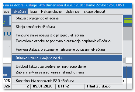 Ne dajemo podršku ako je korisnik na starijoj verziji. Logično, zar ne? •Upisivanje informacijskog posrednika ( 4D Wand Info Br.657 ) – uvijek upisujete svog informacijskog posrednika . Nije vas briga kojeg informacijskog posrednika je izabrao vaš kupac. To je njegova privatna stvar. Upis informacijskog posrednika možete odraditi pojedinačno (na formi partnera), višestruko na označene partnere (Komitenti --> Upisivanje --> Upis informacijskog posrednika na označene komitente) a u Parametri programa --> Podešavanje dokumenata --> Dokumenti možete postaviti osnovnog informacijskog posrednika koji će se automatski upisivati na sve nove komitente; •Ako ste već upisali pogrešnog prodajnog posrednika, te kreirali eRačun koji je dobio status Snimljen na disk, tada idete na padajući izbornik eRačuni --> Brisanje statusa Snimljeno na disk i nakon toga ponovo pošaljite eRačun (pod uvjetom da ste na partneru upisali svog informacijskog posrednika, a ne informacijskog posrednika kupca):
