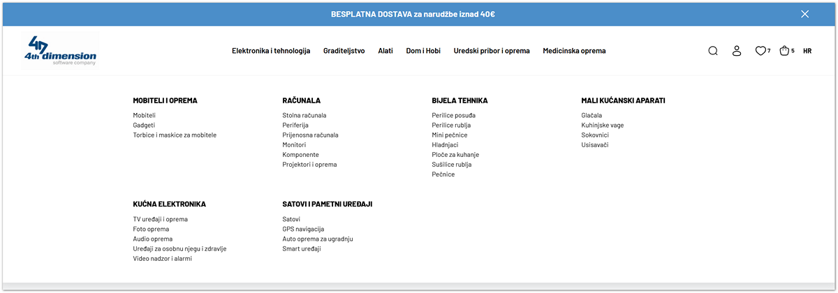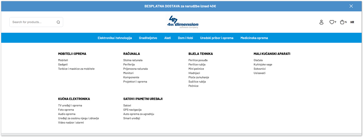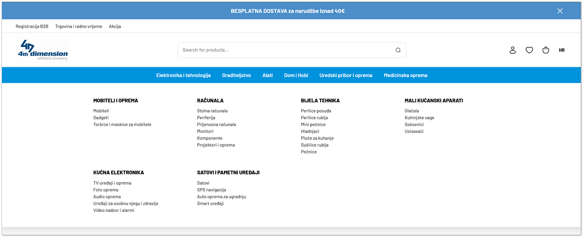 Zaglavlje 3 - sadrži mega meni, idealan za trgovine s velikim brojem kategorija i potkategorija