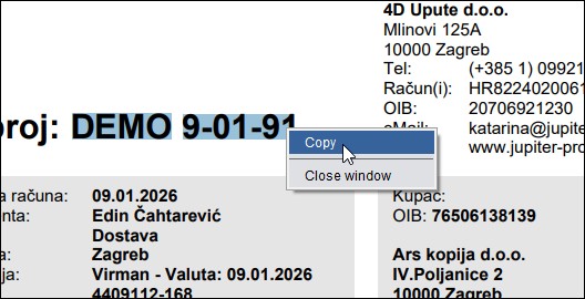 Jednostavan prijenos podataka: Omogućeno je kopiranje teksta izravno s pregleda računa u polja forme ulazne fakture putem standardne copy/paste metode.